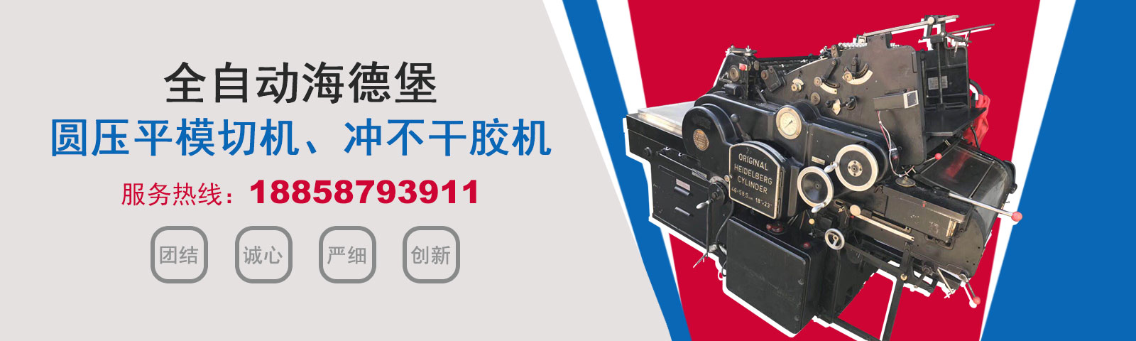 瑞安市恒柯機械廠(www.wzhkjx_com.hncrl.cn)是國內專業制造銷售全自動模切機,全自動燙金機,圓壓平模切機,圓壓平燙金機,滾筒燙金機,沖不干膠機,海德堡凸印機.銷售的產品系列規格齊全,產品具有速度快,壓力均勻,套印準確等特點。